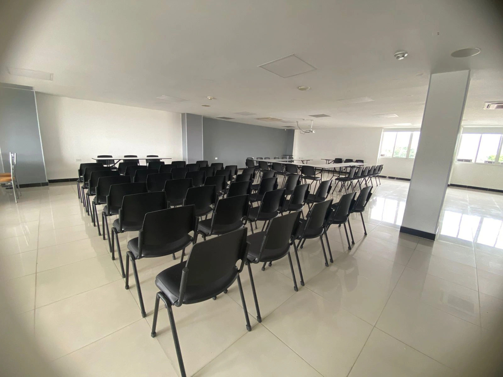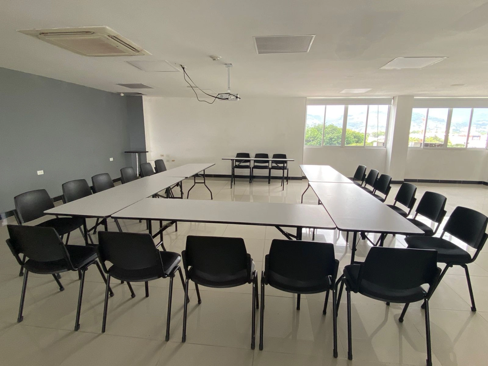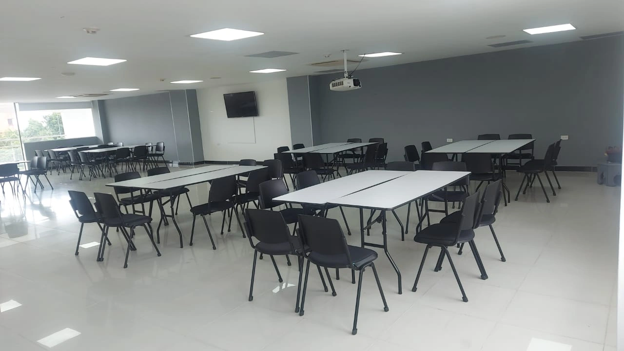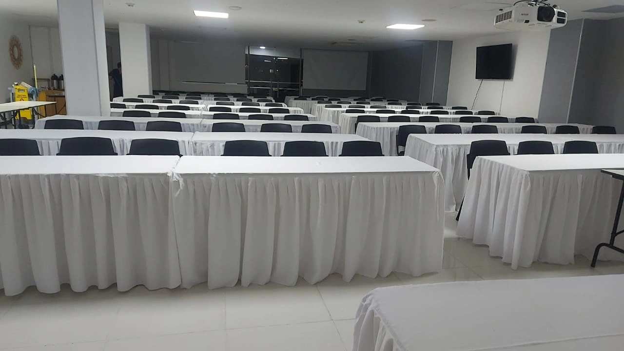 Por qué elegirlo: Maximiza la capacidad de aforo. Es la opción más eficiente cuando el objetivo es la transmisión unidireccional de información (conferencias o anuncios de la empresa) a un grupo grande.